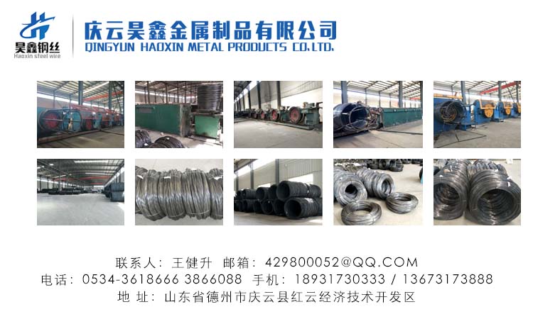 慶云昊鑫金屬制品有限公司坐落在山東省德州市慶云縣紅云經(jīng)濟(jì)技術(shù)開發(fā)區(qū),這里環(huán)境優(yōu)美、交通便利,本廠主要加工生產(chǎn)45#-70#、65Mn彈簧鋼絲、77B-82B預(yù)應(yīng)力鋼絲、30MnSi篩網(wǎng)鋼絲、Q195、Q235低碳冷撥絲等產(chǎn)品。